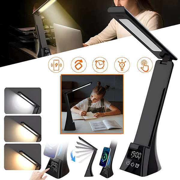 Brez veÄ nereda s kabli ali natrpanih prostorov. TABLECHARGE vam omogoÄa brezĆŸiÄno polnjenje telefona, prilagajanje osvetlitve in sledenje Äasuâvse z enim dotikom. Poenostavite svojo postavitev in ostanite produktivni!