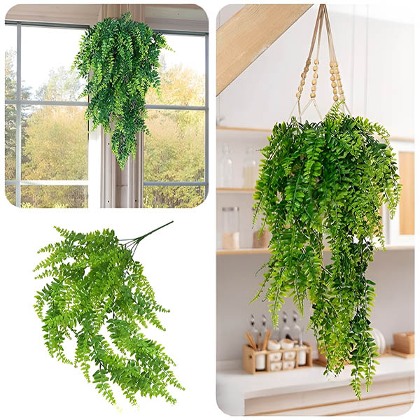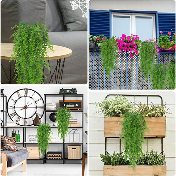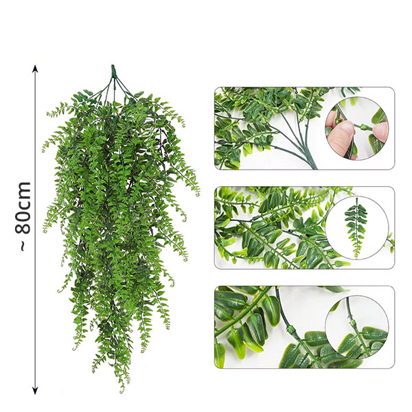 Izdelana iz visokokakovostne, na bledenje odporne PE plastike, ta praprot ostane bujna leta brez venenja in brez odpadkov. Je stroškovno učinkovita, večkrat uporabna in okolju prijazna rešitev za ohranjanje zelenja vašega prostora.