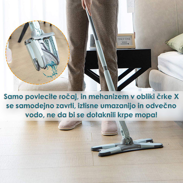 Pozabite na premočene mope in umazane roke! Naš napredni sistem samoožemanja posnema ročno ožemanje, pri čemer odstrani 2x več vode kot običajne krpe, za hitrejše in enostavnejše čiščenje!