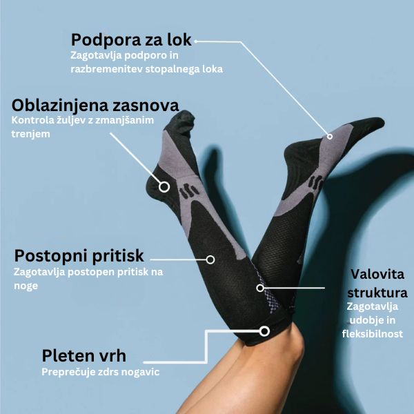 S kompresijskimi nogavicami PRESSOSOX se boste na nogah počutili odlično ves dan. Zmanjšujejo otekanje in lajšajo bolečine ter vam nudijo udobno oporo, ne glede na to, ali ste v službi, na potovanju ali na vadbi.