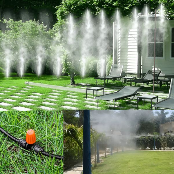 Sistem za meglenje je zasnovan s poudarkom na varčevanju vode, uporablja minimalno količino vode, hkrati pa zagotavlja največje hlajenje. Enostavno se poveže s standardno vrtno cevjo, brez potrebe po zapleteni namestitvi ali dodatni opremi. Fina meglica hitro izhlapi, kar preprečuje prekomerno mokroto, hkrati pa ustvarja prijeten učinek hlajenja. To ga naredi popolnega tako za domačo kot komercialno uporabo, kot so kavarne, restavracije ali prostori za zunanje dogodke.