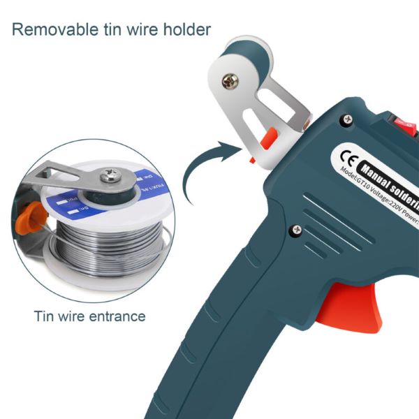 Lahko ga upravljate z eno roko, zato vam ni treba znova usmerjati rok v kositrno žico in kositrno pištolo, prav tako vam ni treba skrbeti, da bi si opekli roke.