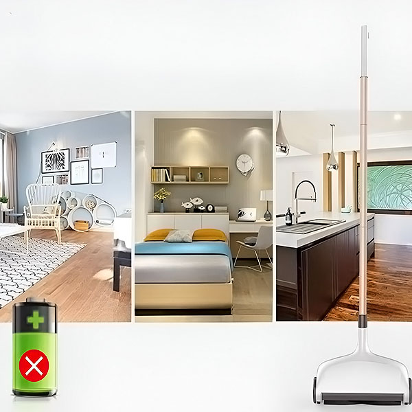 Ni vam treba skrbeti za vtiče ali baterije – ta ročni pometalnik je popolnoma varen in enostaven za uporabo kjerkoli in kadarkoli. Je popolna okolju prijazna rešitev za vzdrževanje čistih tal.