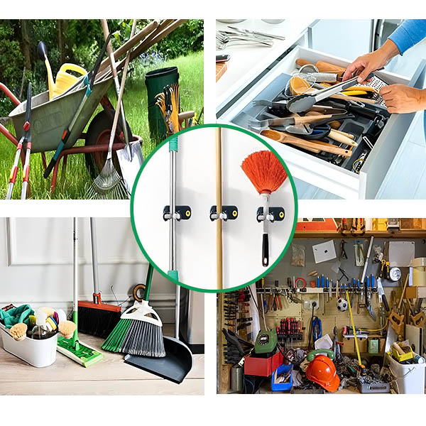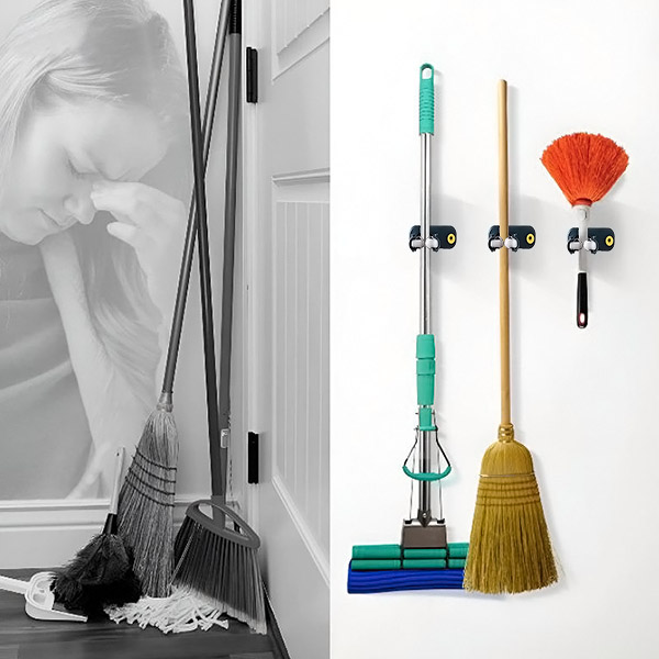 🧹 Naj bo vaš prostor čist in urejen z našim kompletom 3 vsestranskih držal! Odličen za urejanje mopov, metel in še česa drugega v domu, garaži ali na vrtu. 🚪🧺