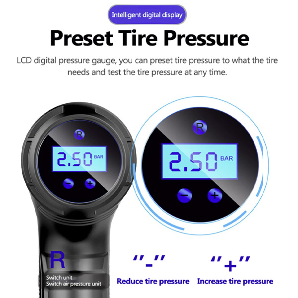 Pametni digitalni zaslon zagotavlja natanÄen prikaz trenutnega tlaka v pnevmatikah, kar vam omogoÄa, da med polnjenjem pnevmatik spremljate spremembe tlaka.