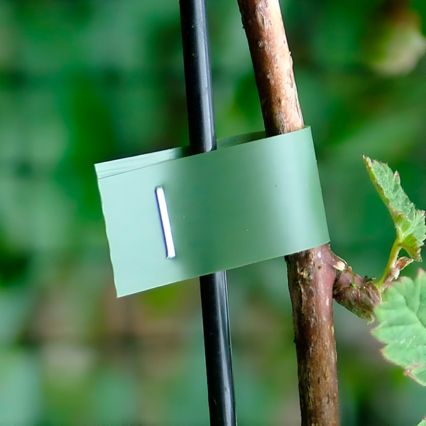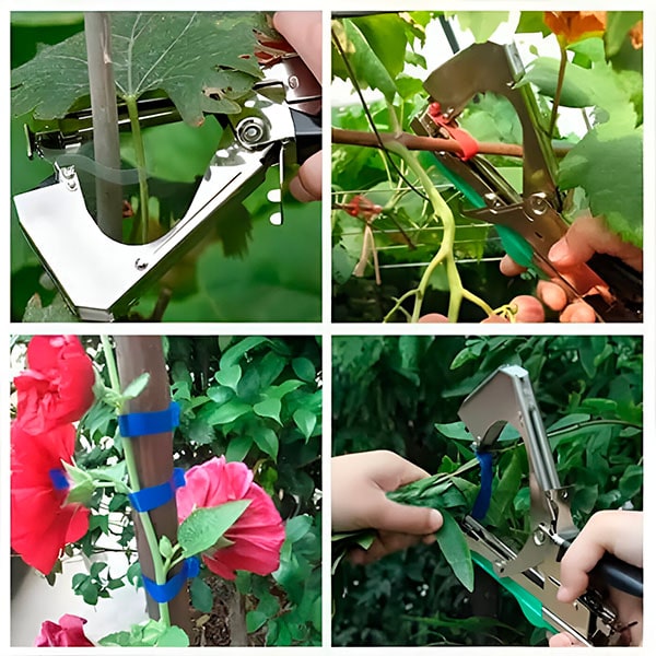Preprosto potisnemo ročaj, da se trak raztegne med kleščami. Trak nato ovijemo okoli rastline, ki jo želimo vezati. S ponovnim potiskom ročaja trak spnemo in odrežemo. Zelo enostavno! – brez skrbi, da bi ta proces poškodoval vaše rastline ali jim povzročil bolečino, saj trak in spenjač zagotavljata nežen, a trden oprijem.