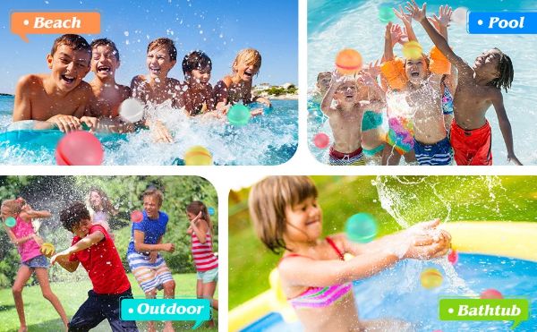 Ne glede na starost so naši vodni baloni za večkratno uporabo razburljiv in prijeten način za premagovanje vročine v vročih poletnih dneh. Ponujajo neskončne možnosti za sodelovanje v številnih igrah in dejavnostih, kot so metanje vodnih balonov, štafetne dirke in vodni boji v bazenu.