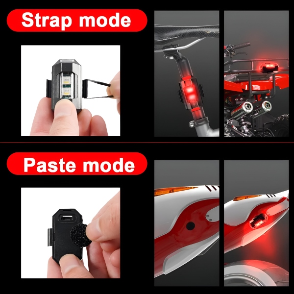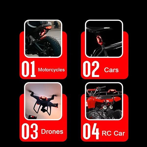 Te luči so neverjetno vsestranske in zasnovane tako, da se prilegajo avtomobilom, motociklom, kolesom in brezpilotnim letalom. Izbirate lahko med načini namestitve z ježkom ali gumijastim trakom za varno in preprosto namestitev. Zapletena orodja ali strokovna pomoč niso potrebna.