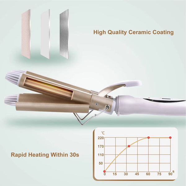 Napredna keramiÄna prevleka zagotavlja enakomerno porazdelitev toplote, kar omogoÄa gladko drsenje las brez poĆĄkodb. UĆŸivajte v dolgotrajnih kodrih z dodatnim sijajem in minimalnim krepom.