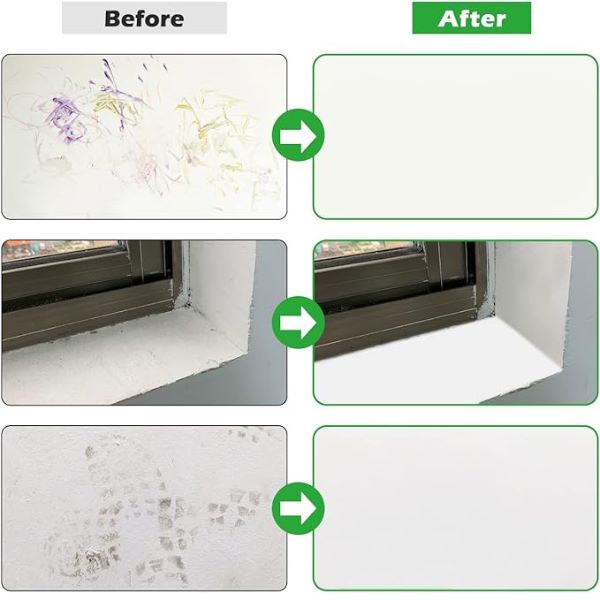 ROLLPAINT učinkovito odstranjuje madeže, odtise čevljev in otroške odtise na steni.