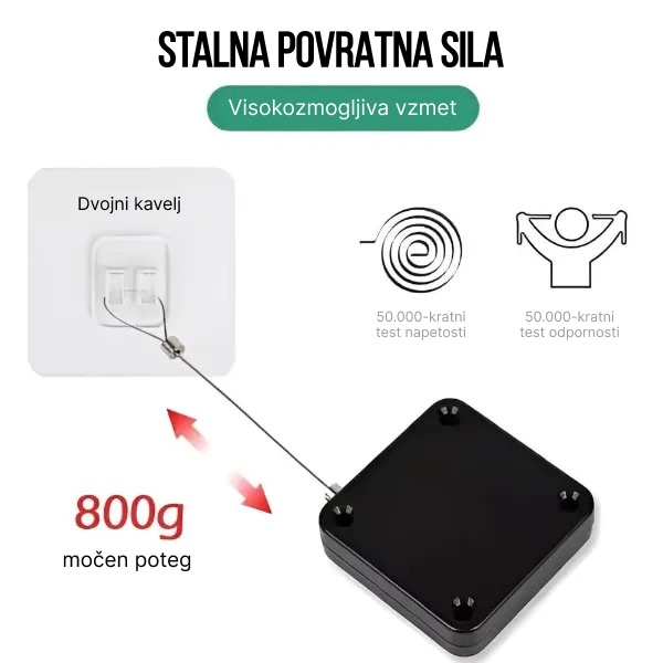 1,2 m dolga jeklena žična vrv zmore 50.000 nateznih in odbojnih testov za dolgotrajno delovanje.
